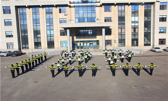 12月1日,细河大队全体民警和警辅人员利用午休时间,摆出“122”队形,致敬第十个“全国交通安全日”的到来。